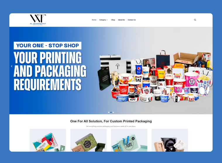 Al Waraqiyat Packaging – Premium Packaging Solutions Built with Elementor Pro, Al Waraqiyat Packaging delivers a sleek and professional online presence for a top-tier packaging
