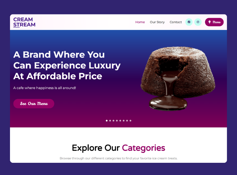 Cream Stream – Indulge in Sweet Delights Built with Bricks Builder, Cream Stream is a vibrant and engaging website designed to showcase a world of